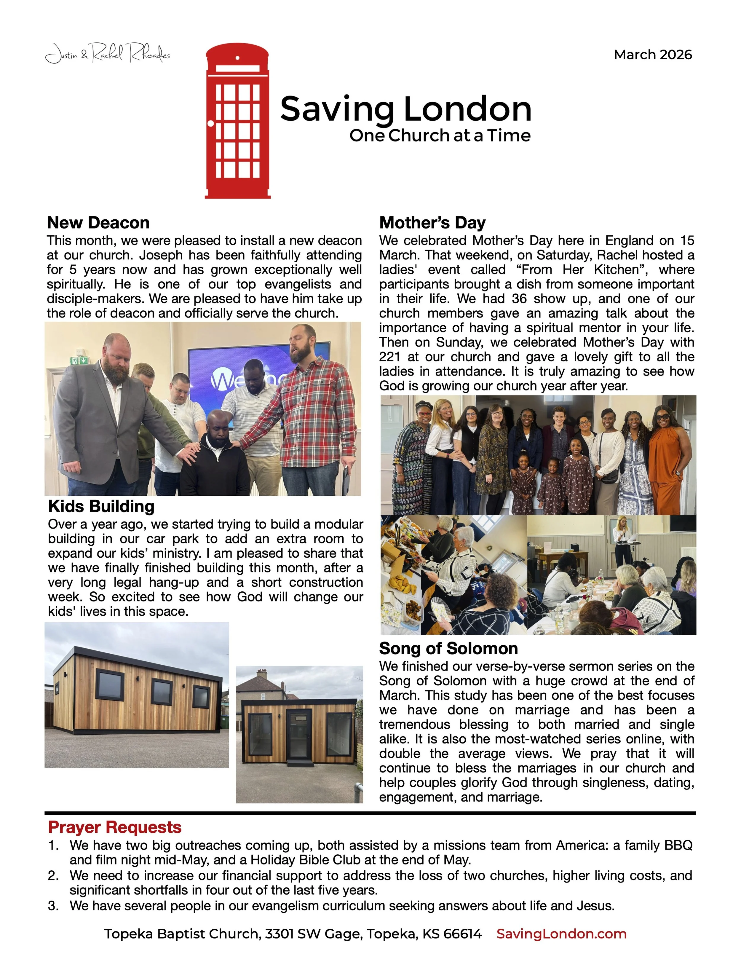 Monthly Prayer Letters