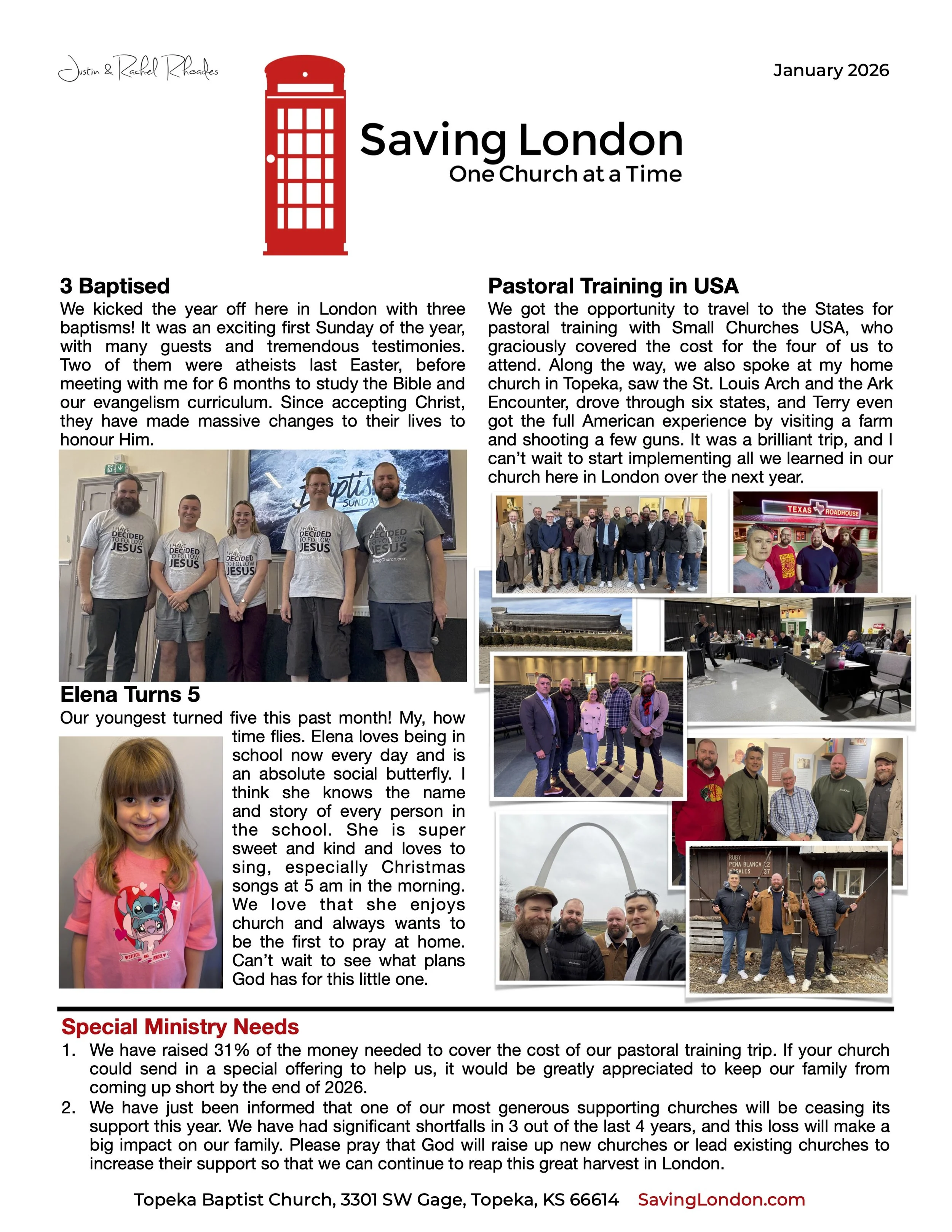 Monthly Prayer Letters